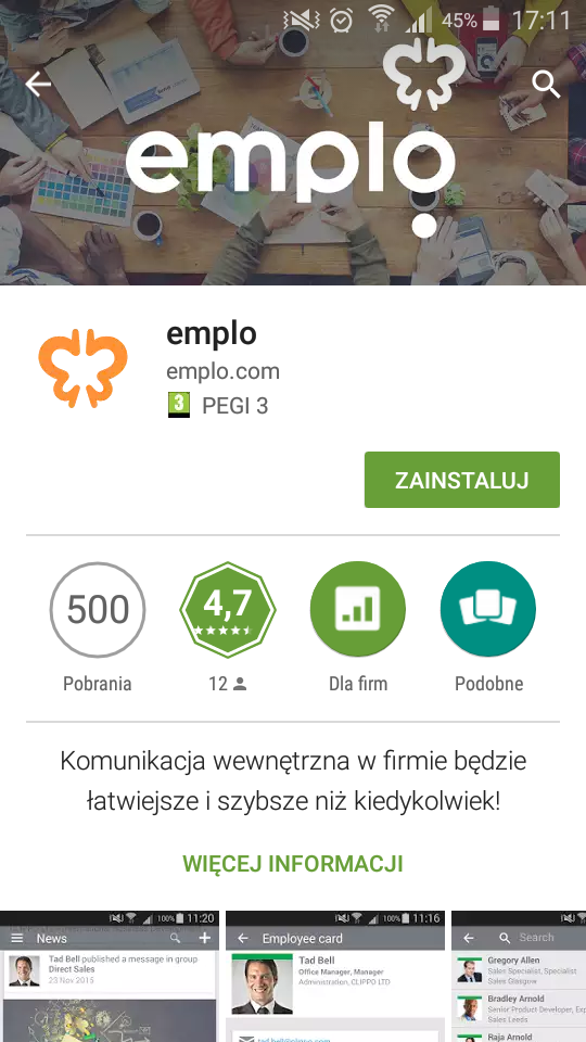 1.Pobierz i zainstaluj bezpłatną aplikację emplo